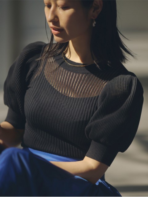 リブのようなラインと透け感で、コントラストのある女性らしい印象に♥