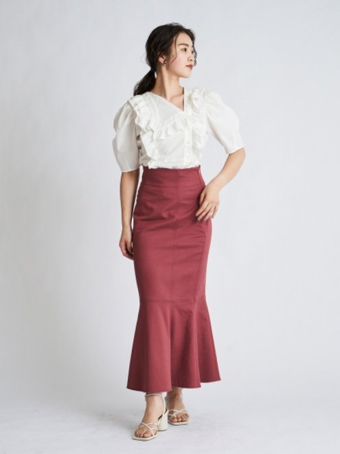タイトシルエットとのコントラストが引き立つロングスカート♥