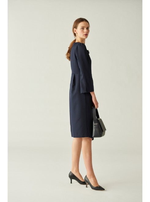 レディなスタイリングが一枚で完成するボウタイ付きのニットワンピース