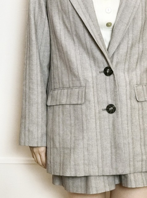 同素材のヘリンボーンキュロットとSETUPで着ると、大人カジュアルな雰囲気が漂います♪
