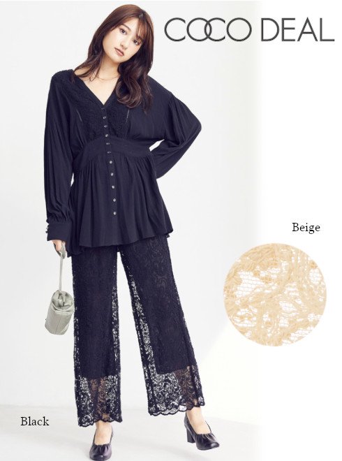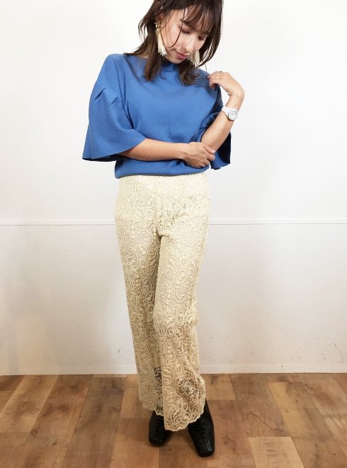 繊細なエンブロイダリーが女性らしいレースパンツ