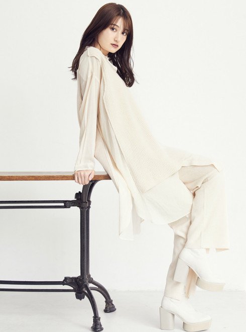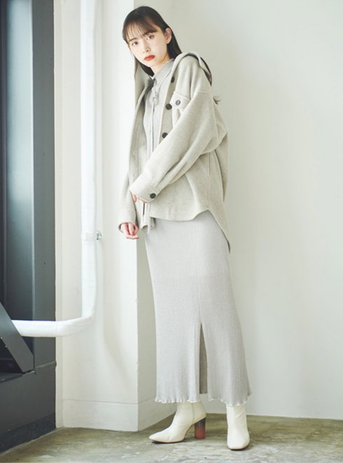 甘くなりすぎず、合わせやすいカラーはレイヤードスタイルにも活躍