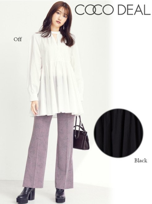 透け感のあるシフォンジョーゼットとマットサテンをミックスしたプリーツチュニックブラウス
