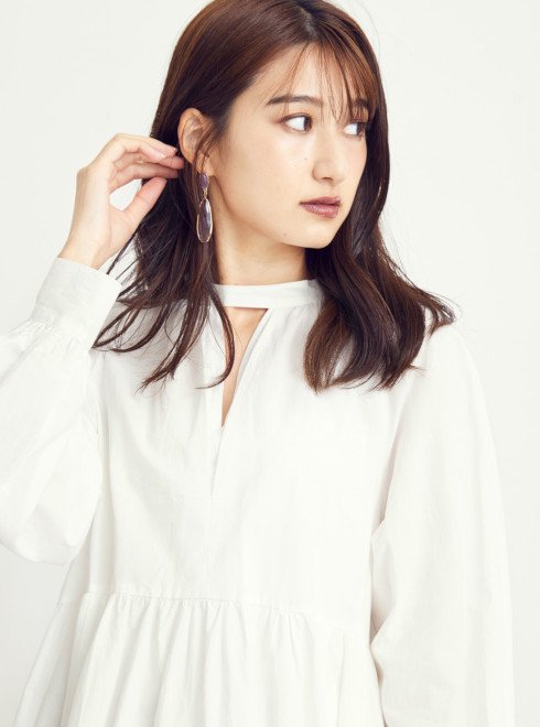 V開きと釦開きの前後2Wayで着用可能で、首のリボンも前後どちらに垂らすかで印象を変えられます。