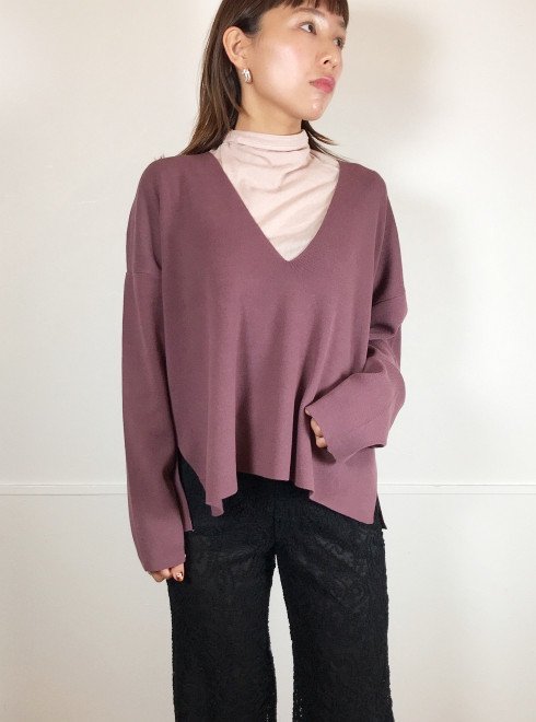 軽く適度な厚みのニットはコートの中に着てもごわつかずスッキリ着られます。