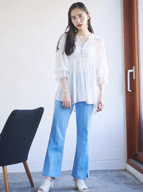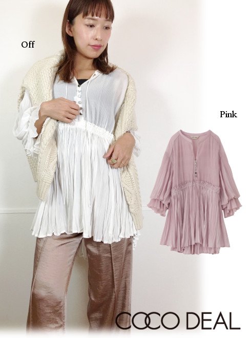 上身頃と袖は繊細なマジョリカプリーツ、下身頃はワッシャープリーツを施した贅沢な1枚です。