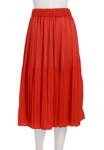 発色のいい赤色スカート♪プリーツのスカートが脚の長さを強調してくれます♪