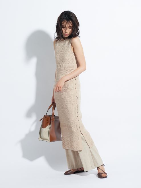 裾のサイドにスリットを施し、すとんと落ちる縦のラインで女性らしいシルエットを引き立てます。
