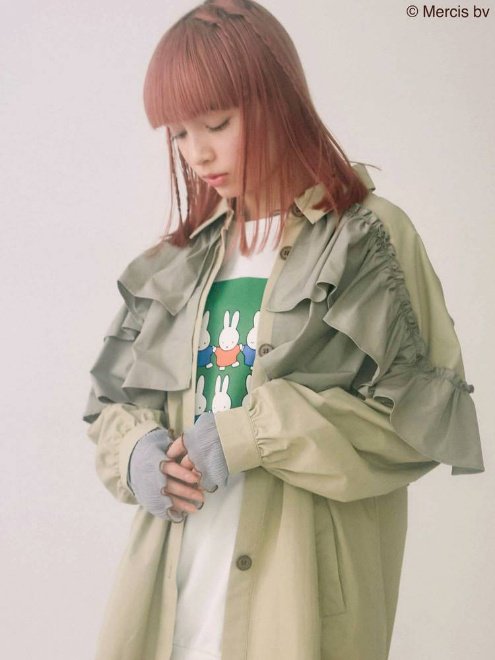 たっぷりのフリルデティールがデコラティブなトレンチコート♠