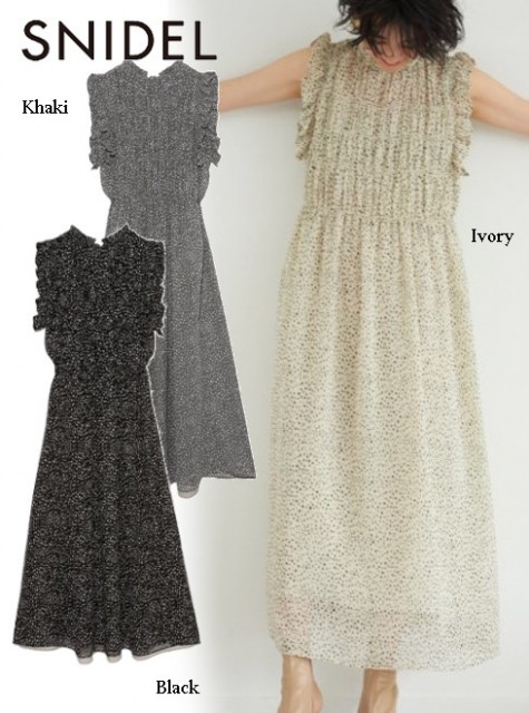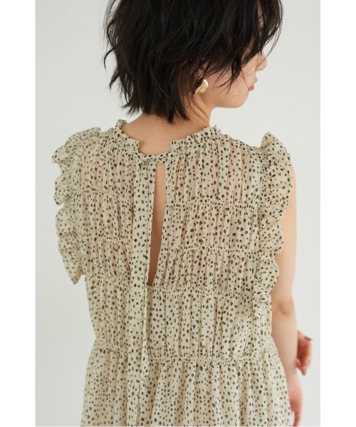 モードな表情のランダムドットプリントでフェミニンに着こなせるシャーリングワンピース