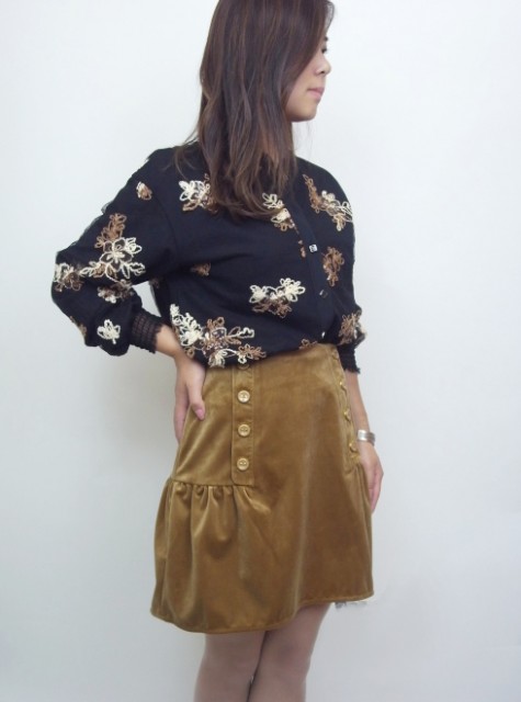 ふっくらとした起毛感と光沢のある生地で、シーズンらしいリッチスタイルを叶えるスカート。