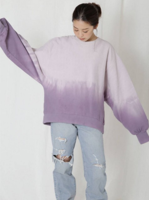 コシのある素材に、1枚ずつ手作業で染めたスウェットはメンズライクにも◎