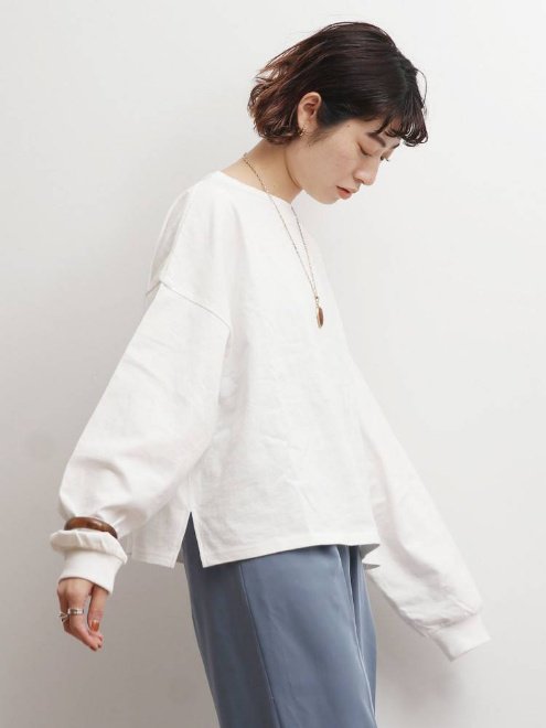 程よくルーズなサイジングとニュアンスカラーでより女性らしいスタイルに♪
