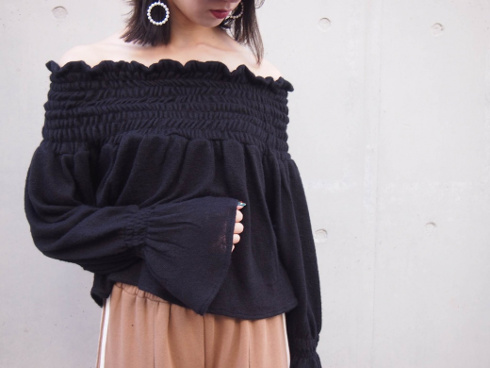 ギャザーやフリル、オフショルダーとガーリームード漂うトップス。