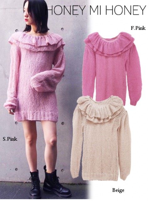 ネックラインにあしらわれた二段のフリルが印象的な透け感のあるBIGサイズニットがお目見え。