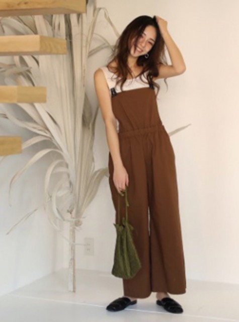 No.3 布帛のボディ×綾テープの肩ひもが可愛いサロペットはほかには無いデザイン!