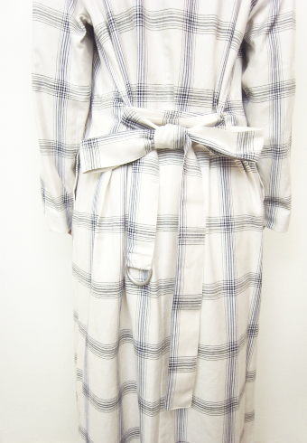 大柄チェックが印象的なテーラードカラーのロングガウン