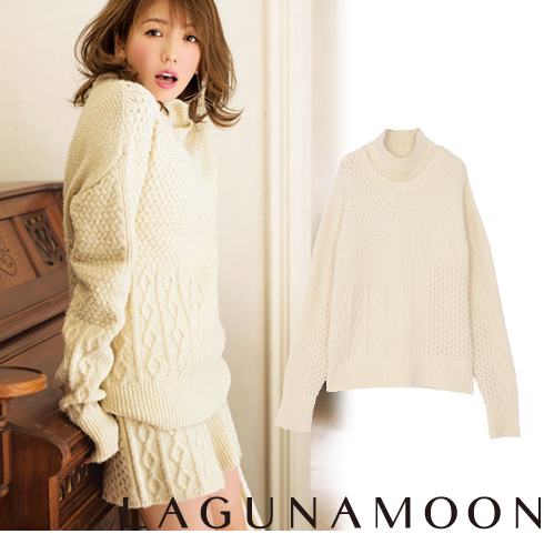 タートル襟のカッティングとリブのデザインがモダンな印象のタートルニット!
