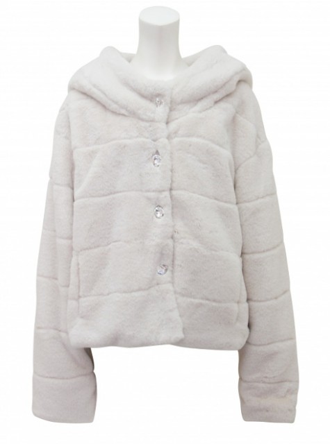 ビックサイズのビジューボタンをフロントにあしらい、大きめのフードでガーリームードを演出。