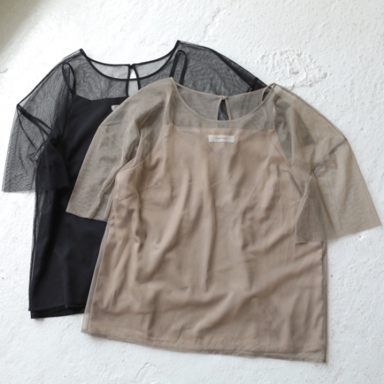 インナーにキャミソールがついているので、それと合わせて着てもらってもいいですし、白Tのうえにチュールだけを重ねるなど、スタイリングは様々。