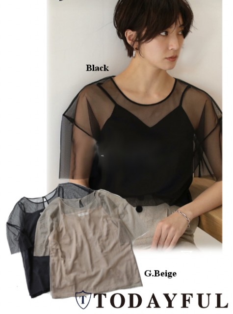 透け感あるチュールトップスは、季節感のある涼し気な印象に☆