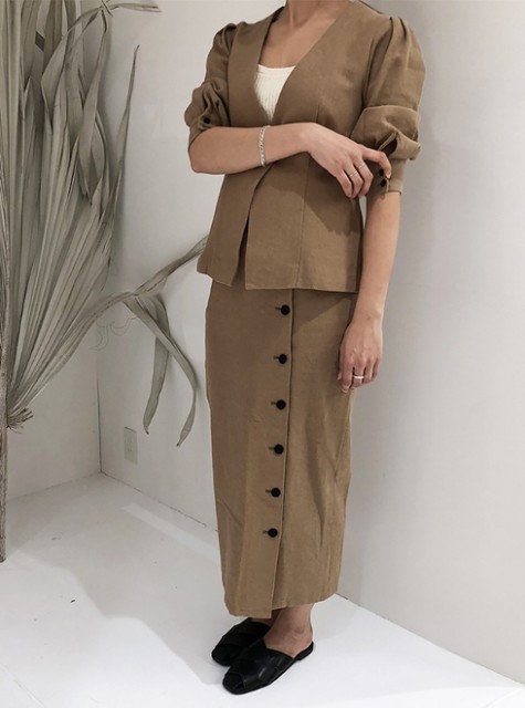 上品なリネンのペンシルスカートはカジュアルにもキレイめにも着こなせるアイテム