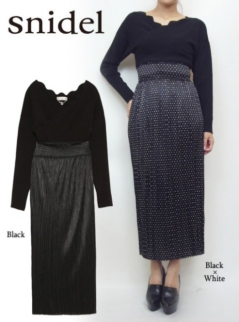 デコルテが綺麗に見える、スカラップが特徴のニットドッキングワンピース。