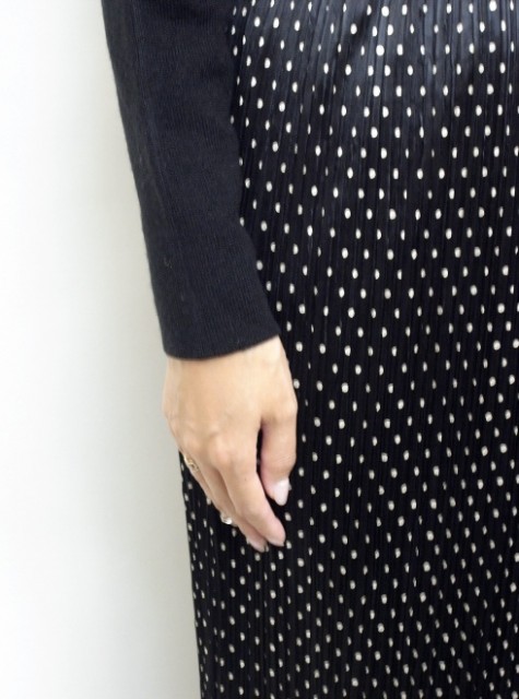 華やかな模様がプリントされた、プリーツ素材とのコンビネ―ションも素敵です。