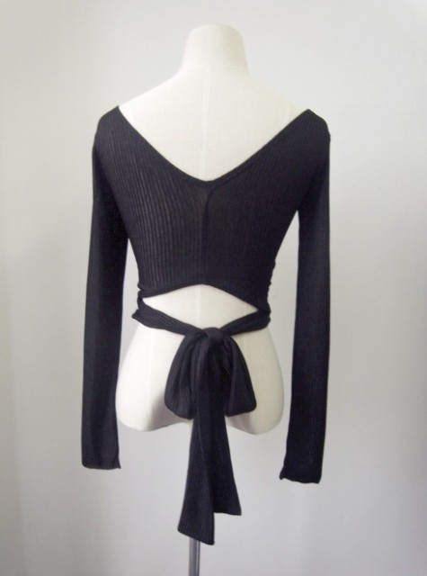 広く開けたバックネックや、腰に結んだリボンが、後ろ姿を女性らしく彩ります。
