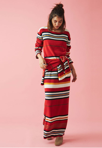 インパクトのあるキャッチーなマルチボーダーが目を引くワンピース♪