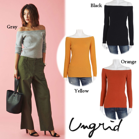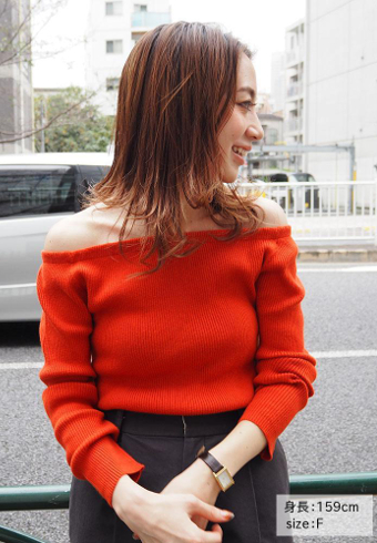 リブ編みのオフショルダー。トレンドでもある”オフショルダー”は押さえておきたいアイテム♪