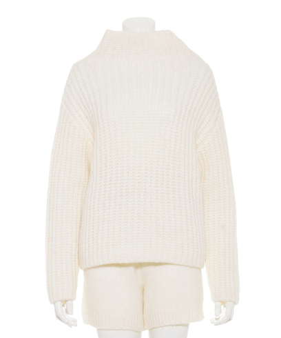 セットアップで合わせれば旬のモテコーデが完成☆ふっくらニットショートパンツが守りたくなる印象に