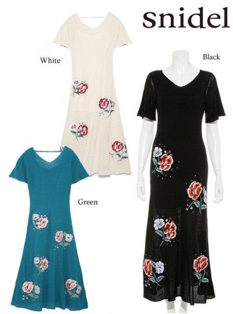 リアルクローズに落とし込みやすいトレンド、エンブロイダリーが主役のロングニットワンピース。