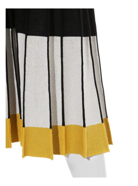 編み地でプリーツ柄を表現したニットスカート。