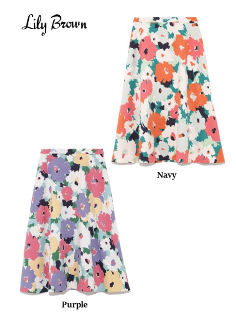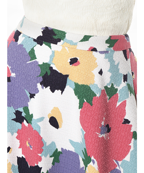 今季らしいレトロな花柄模様と春を感じるカラーリングが特徴のフレアスカート。