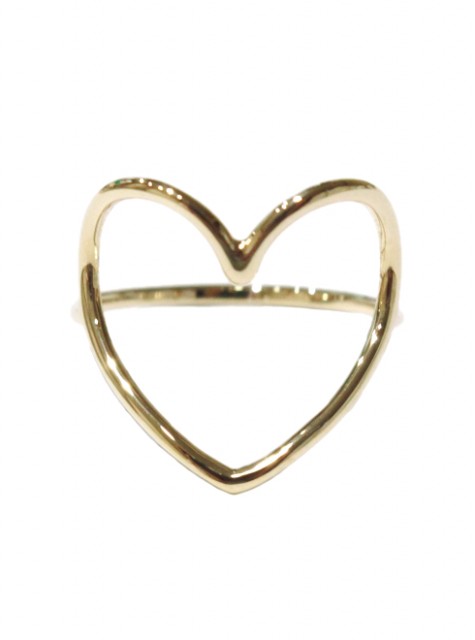 大きなハートのリングは、大人の女性もつけやすいデザインに。