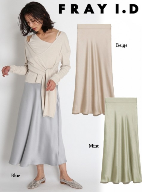 ★淡いカラーリングがニュアンス感たっぷりなサテン生地のスカート。