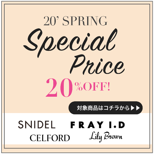 スペシャルプライスセール追加! ★春新作アイテム今だけ20%OFF★SNIDEL,FRAYI.Dから春服に買い足したいアイテムがさらにお得に!