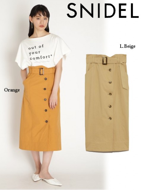 王道のトレンチスカートを、シックなIラインシルエットで仕上げた一枚。