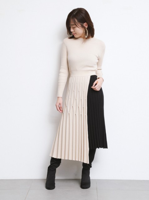 バイカラーがアクセントになる「FRAY I.D」らしいモードなニットワンピース