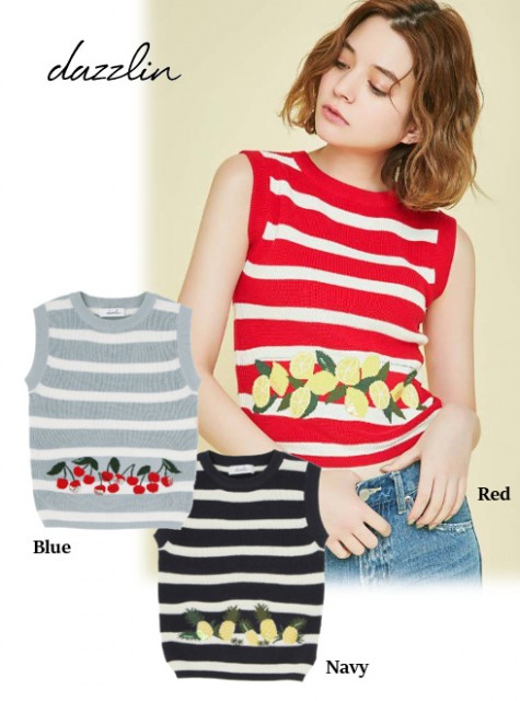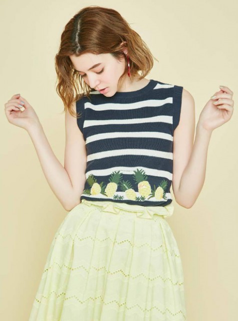 ボーダーとフルーツ柄がシーズンムードを盛り上げるニットトップス