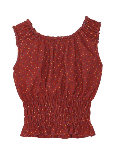 散りばめられたプチハート柄で、愛らしさたっぷりに仕上げたタンクトップ