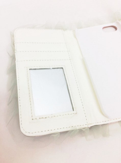 淡いカラーのサテンに、チュールのフリルが可愛らしいiPhoneケース。
