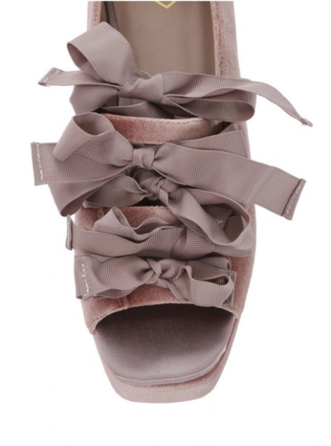 リボンがいっぱい。ベロア×サテンリボンパンプス