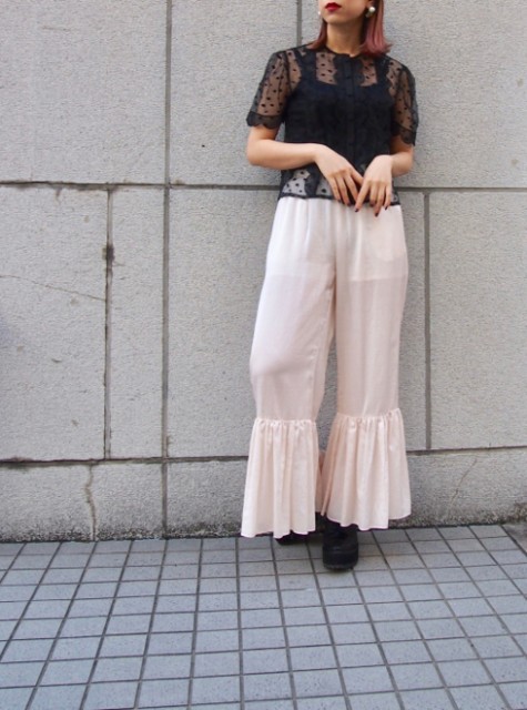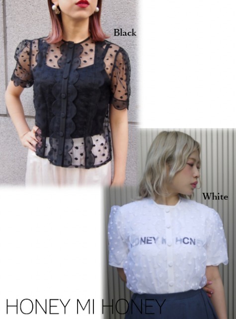 シースルーでフェミニンで女性的な雰囲気に袖口とフロントをスカラップで愛らしく仕上げガーリーさをプラス。