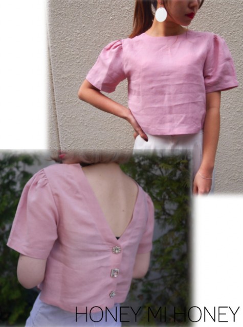 ヴィンテージの華やかなボタンがポイントになったリネンブラウス☆