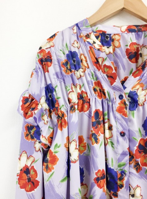 ゆったりとした丈や素材が大人風味のフラワープリントブラウス