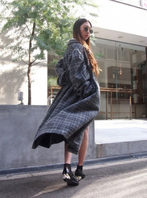 ボリュームスリーブがモードな印象に。チェック柄でシックなトレンドスタイルが完成★