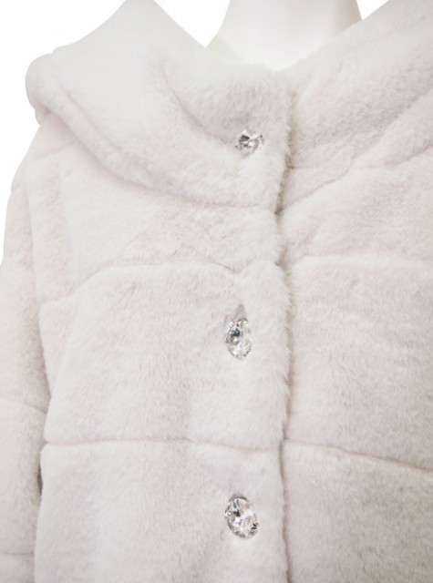 ビックサイズのビジューボタンをフロントにあしらい、大きめのフードでガーリームードを演出。