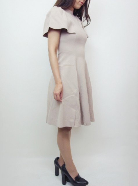 肉厚な編み地にしフィット&フレアシルエットが、シンプルながらも華やかな雰囲気に。